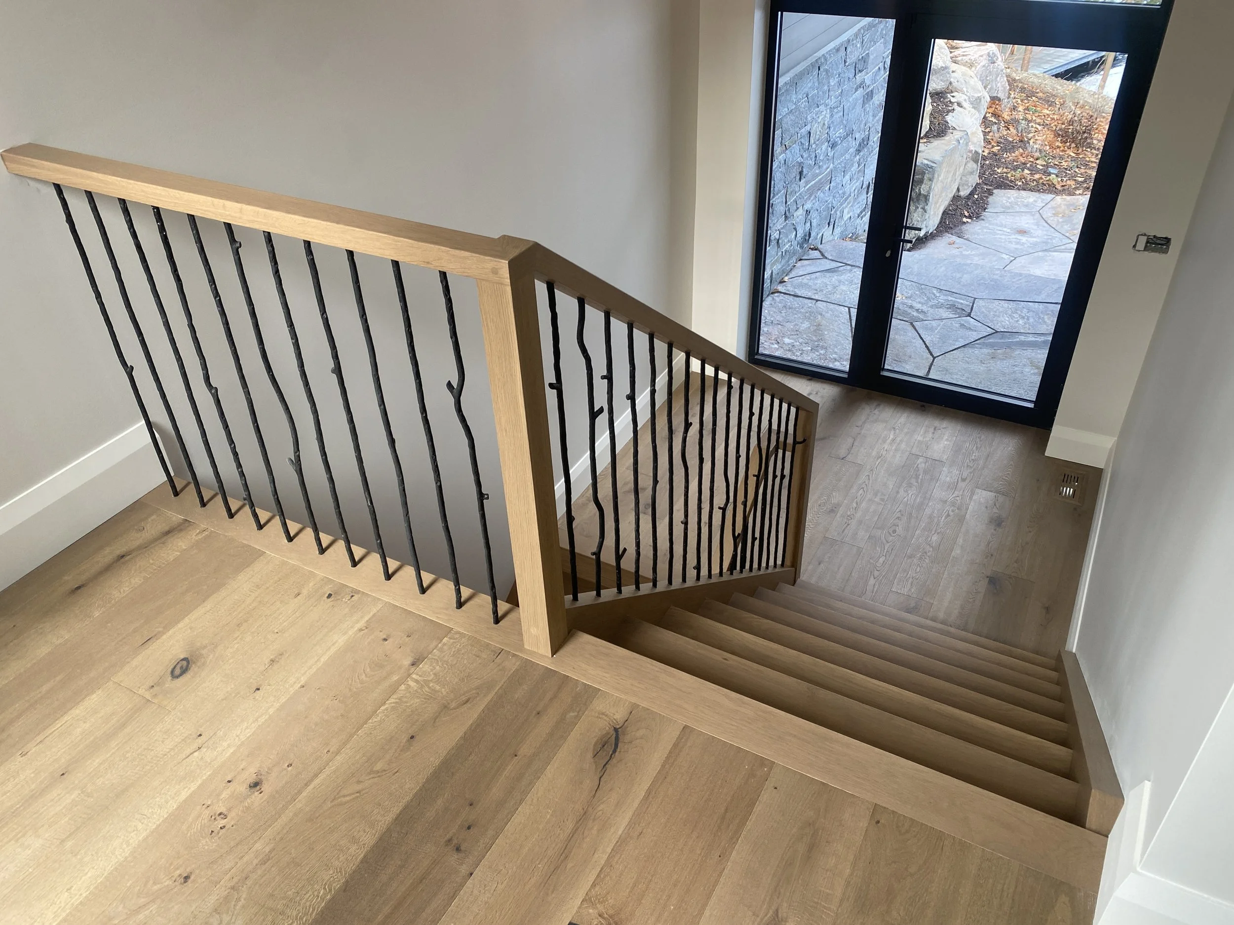 Lake Muskoka White Oak Staircase Staining and New Build Painting.